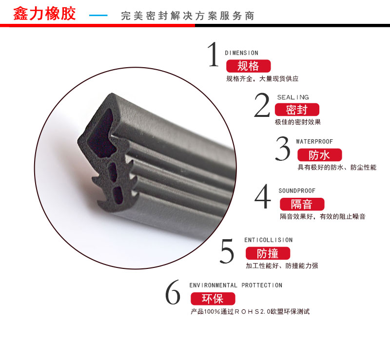 1. 常用材料是三元乙丙橡膠、采用擠出微波硫化等發(fā)泡工藝擠出成型,表面光潔美觀,具有良好的彈性和抗壓縮變形。