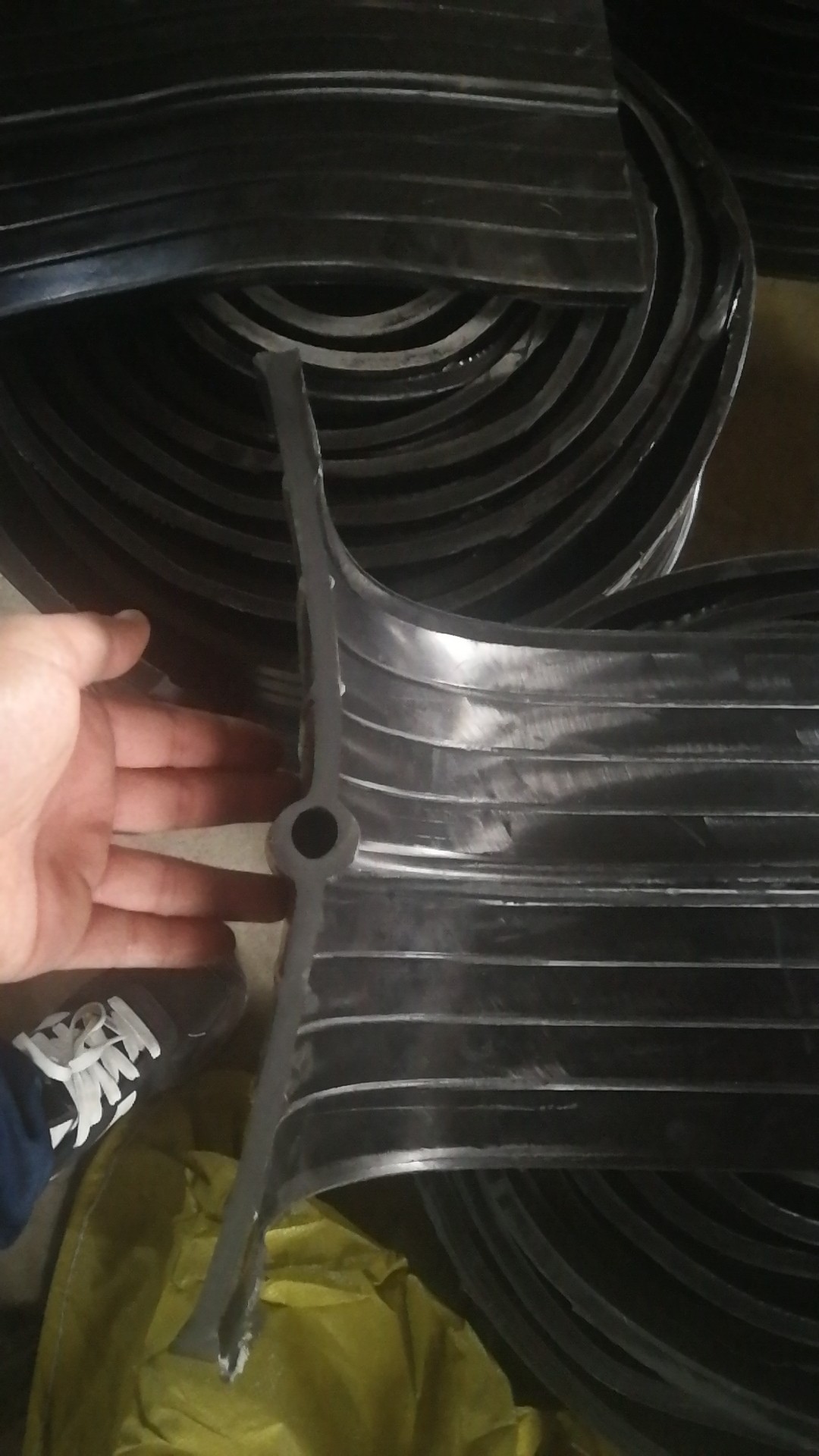橡膠止水帶是利用橡膠的高彈性和壓縮變形性的特點,在各種載荷下產(chǎn)生彈性變形,從而起到有效緊固密封,防止建筑構(gòu)造的漏水、滲水及減震緩沖作用。在一般較大工程的建筑設計中,由于不能連續(xù)澆注,或由于地基的變形,或由于溫度的變化引起的混凝土構(gòu)件熱脹冷縮等原因,需留有施工縫、沉降縫、變形縫,在這些縫處必須安裝止水帶來防止水的滲漏問題。止水帶主要用于混凝土現(xiàn)澆時設在施工縫及變形縫內(nèi)與混凝土結(jié)構(gòu)成為一體的基礎工程,如地下設施、隧道涵洞、輸水渡槽、攔水壩、貯液構(gòu)筑物產(chǎn)品